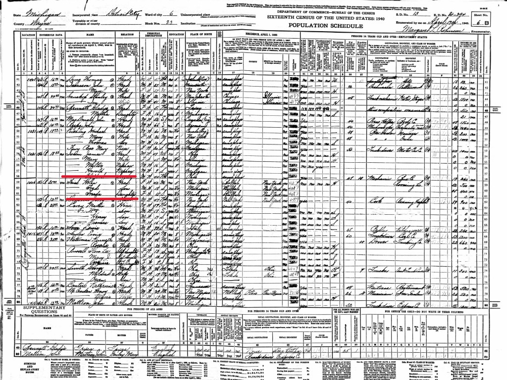 | Census | 17 Apr 1940 (age 43) | 1406 Lafayette Boulevard West, Detroit, Wayne, Michigan, United States9 |