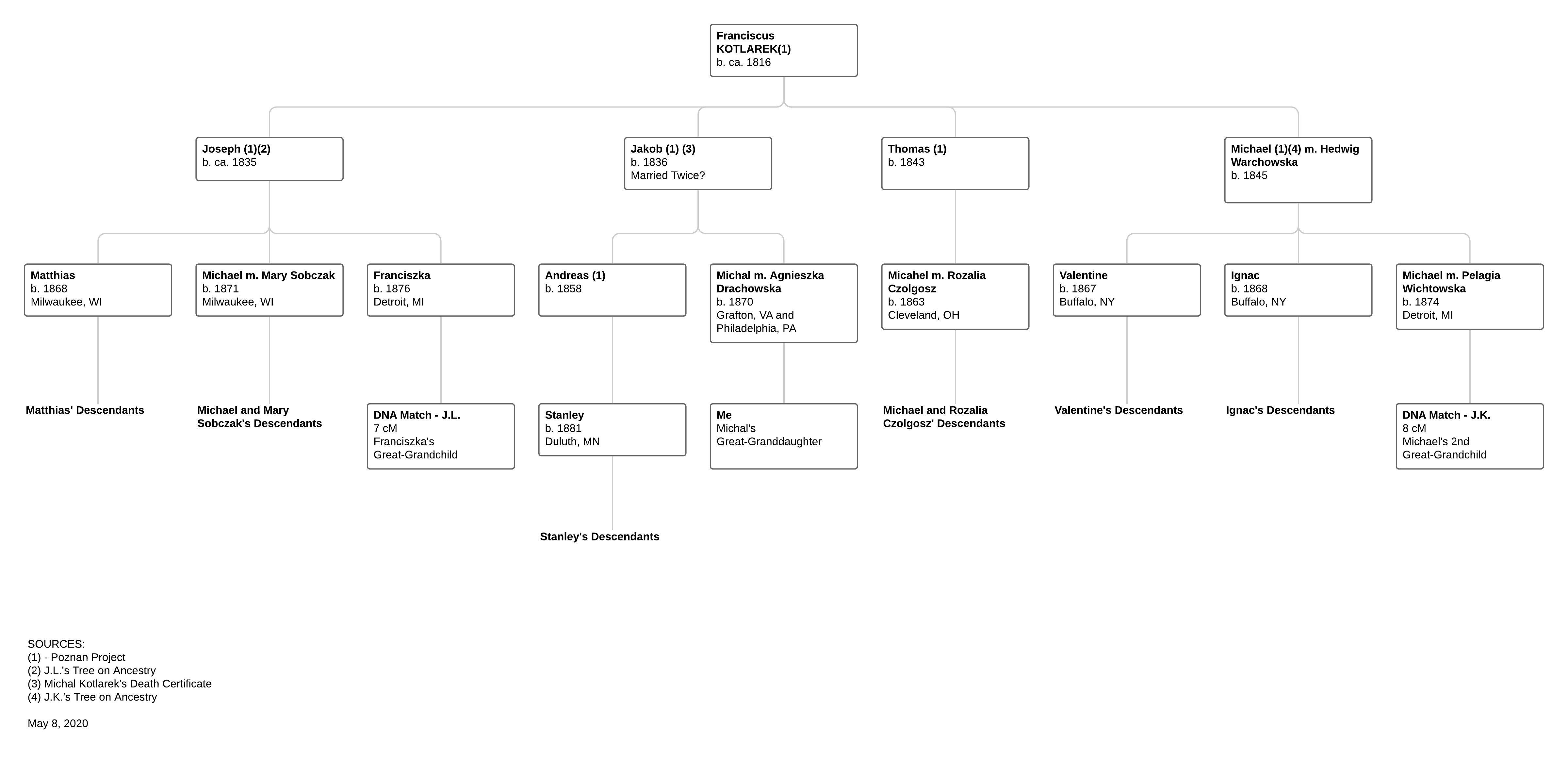 Below is the family tree that Barbara has put together based on census records, DNA matches, and records found at The Poznan Project. Right mouse click on the image below, and select “open in new tab” to view the full sized image.